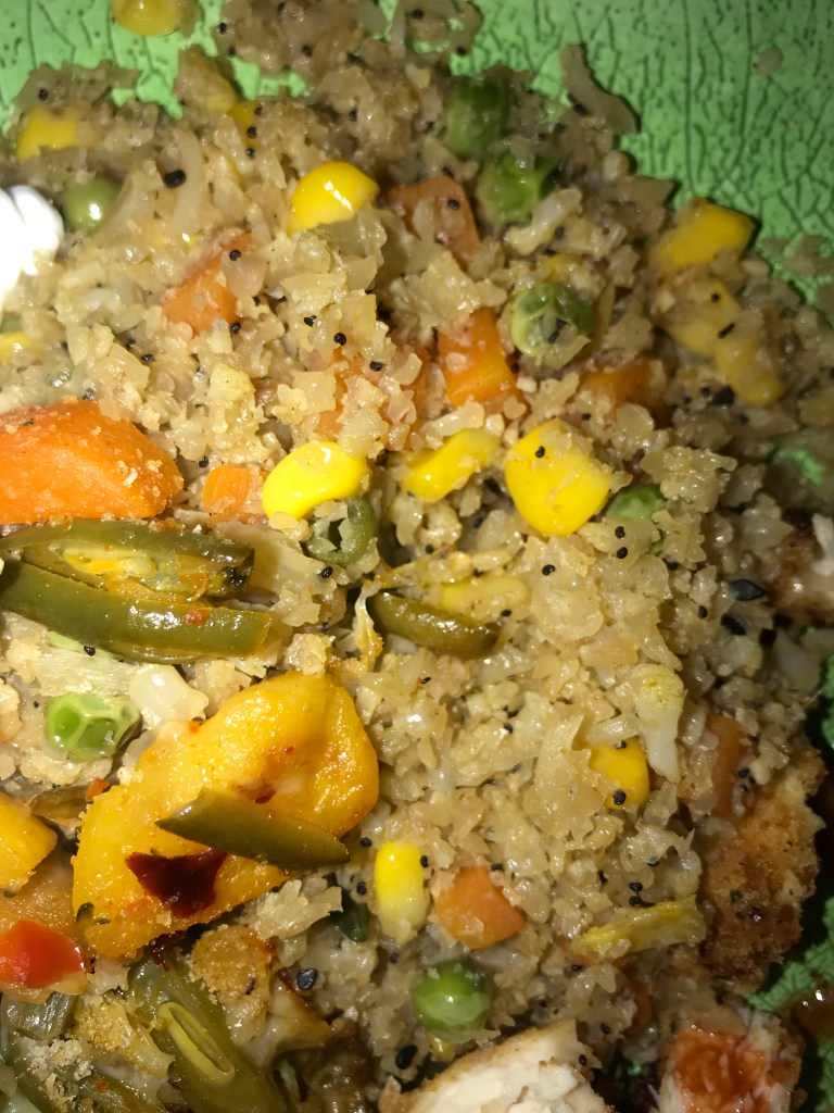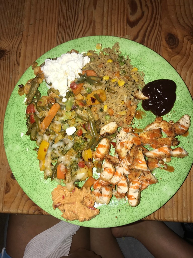 The past few weeks of my life have been all over the place. I currently live in an apartment in Boston, yet I still go home on some weekends and weekdays to spend time with my family. The constant change in location has altered my usual eating habits. I have not done a “full” grocery shop for most of the summer, as I did not want any of the food to expire or become stale. I have cooked a constant breakfast of egg whites and oatmeal with peanut butter for as long as I can remember. Lunch is usually a salad on-the-go, or a protein bar when I am at work. Dinner time while I am at school is homemade, while the “fast-food” meals tend to occur when I am in my hometown or somewhere other than my apartment. My dinner is some combination of a protein (chicken, turkey breast, or steak) paired with a form of a vegetable and starch. My favorite side dish to make it cauliflower stir-fry, which I have provided a picture of below. I blend the cauliflower until it is a rice-texture, throw it on the pan, and add some frozen veggies until it is cooked. Then, I will add teriyaki, soy sauce, or hoisin sauce to add a little flavor. Reflecting on my cooking style, I would say it most closely resembles from American cuisine style- protein, vegetable, and starch. Although I consume an American diet, I incorporate cultural food styles as well, such as the soy sauce and teriyaki, which is commonly used in Chinese cuisine.