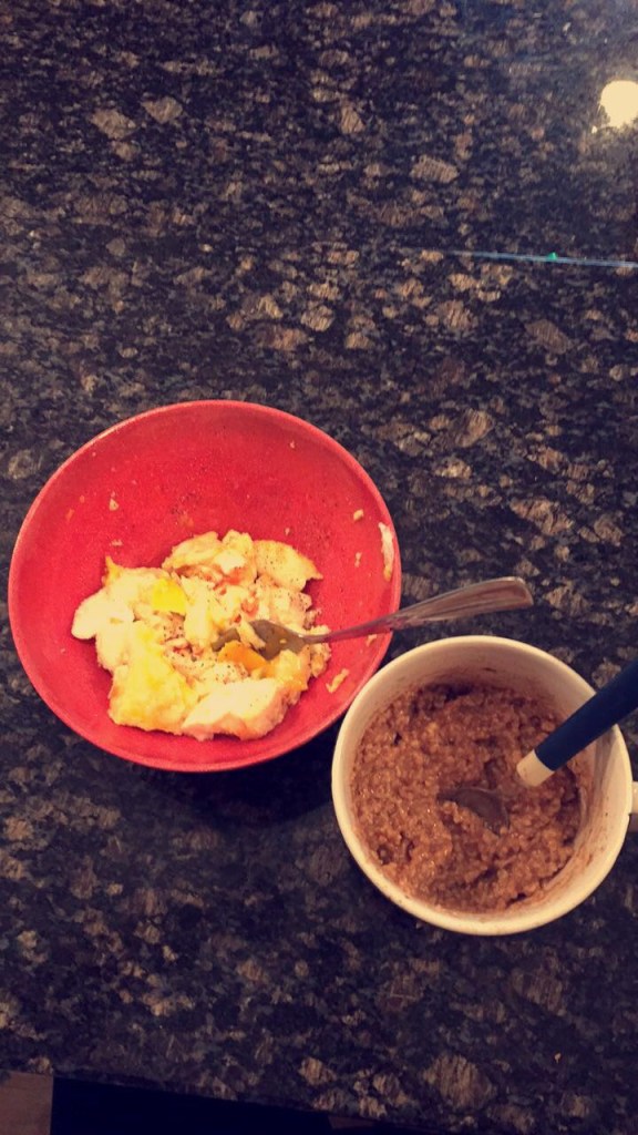 I decided to write a blog detailing my daily breakfast routine, as I tend to eat the same thing most days of the week and conduct the same routine. When I wake up (on a day off work) I brew some coffee grounds. While the coffee is brewing, I start to cook my breakfast. My breakfast is based around a healthy diet and encompasses all three major macronutrients- protein, fats, and carbohydrates. I start by cracking 3-4 eggs and using just the egg white to make an omelet. I will add some type of vegetable to the eggs, either broccoli, spinach, or peppers. While the eggs are cooking, I pop a 1/2 cup of oats in the microwave for about 2-3 minutes. When both the omelet and oatmeal is complete, I will top the eggs with hot sauce and the oats with peanut butter. This way, I get protein from the egg whites, fats from the nut butter, and charms from the oatmeal. The reason I use only egg whites is to save my fats for peanut butter, because peanut butter is one of my favorite foods!